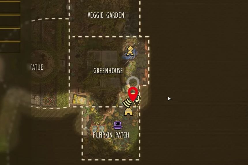 Go towards the greenhouse area. You will see a pumpkin with a symbol on it. Use your tier-3 axe to break the pumpkin. Inside the pumpkin, there will be acid. Move forward carefully to reach the other end. On the bench, you will find the Crimson Reapers.