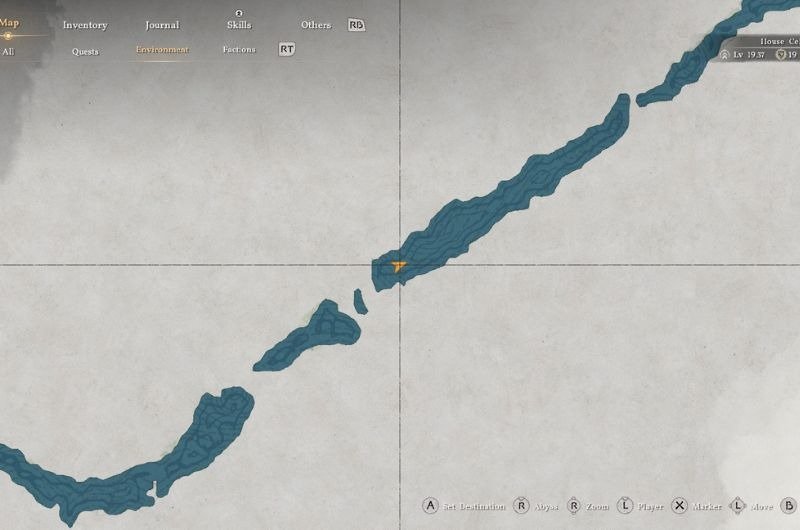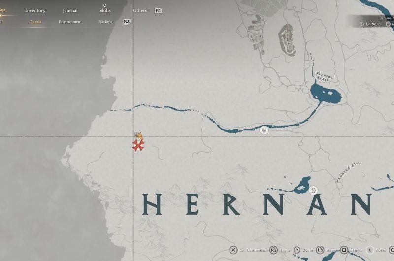 Head towards the marked location in the map given below and use your Swift Stab Ability(RB+Y/R1+Δ) to pierce through the waterfall covering the secret cave, where inside the chest you will find thePlate Shadow Armour’s Boots