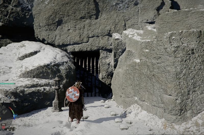 To find the Chestpiece Armour of the set, head all the way to the North of Hernand in the chilling cold of the Argent Peaks, follow the marked location given below. Here you will find an enclosed spear-framed gate. Ignite the Fire Lamp to open the gate and claim your Armour from the chest.