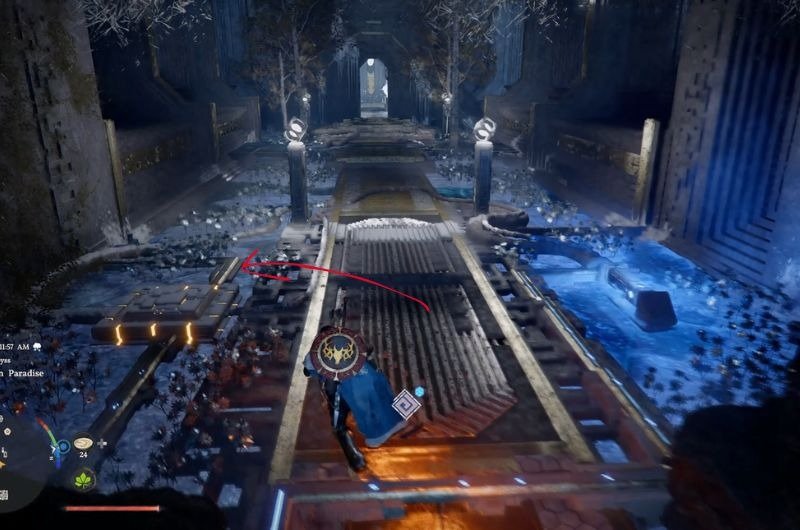 - Stepping inside the crypt, stand on the pressure plate to reveal the underground location.