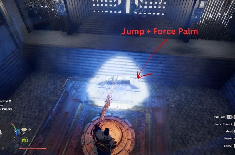 - Upon reaching the other end of the portal, you’ll see a Power Generator on the surface right before the portal. Go towards it, Jump and use Force Palm on top of it to activate the Generator.