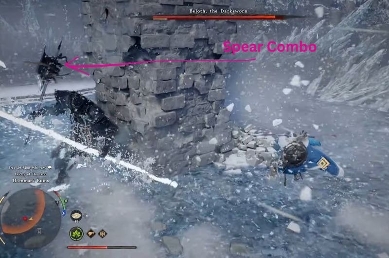 When Beloth takes out his Spear, it is the most optimal time to land combos on him and deal huge damage to him.