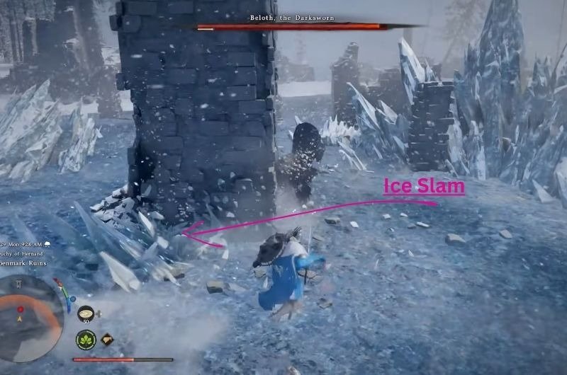 You need to be careful of Beloth’s attack patterns because he can absolutely one-shot you to oblivion. His 1st Combo consists of rapid Flurry attacks followed by an Ice Slam attack, which will cause a good deal of damage.