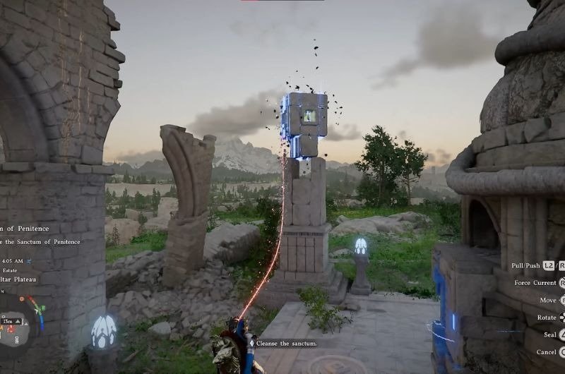 After you’re done with all the enemies and have completed the Benediction Puzzle by finding and placing the broken block back on the Kiln. You can find the block in the upper section of the Sanctum. Inside the doorway, you’ll find the floating block. Use your axiom force to guide it along the way and place it on the Kiln, then use your Jump + Force Push to settle the block in the position.