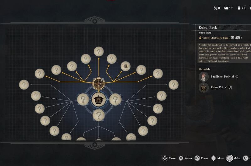 Before crafting the Rocket, you need to craft a base Kuku Pack, which requires a Kuku Pot and a Peddler’s Pack.