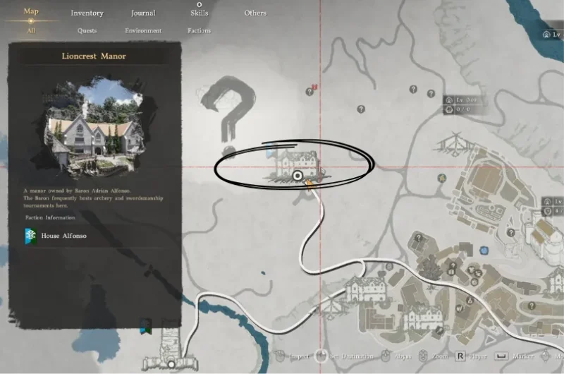 Make your way to the Lioncrest Manor. Once you’ve reached the manor, you will be able to see that there is a guest manor to the west of the Lioncrest Manor.