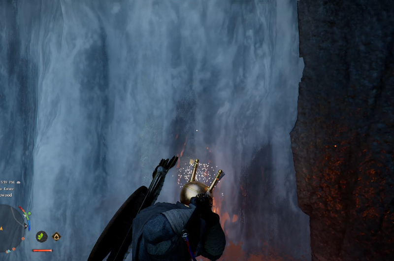 Throughout this guide, always look for the stone structure near the waterfalls as this is an indication of the point of entry inside the waterfalls. Nevertheless you can’t just stroll inside the waterfall, because the currents are not gonna allow you inside and also take little amount of subsequent damage. To gain entry inside the waterfalls, you are gonna have to use Thrust skill standing near the waterfalls, doing this you gain entry inside and have to do the same to get out of the cave.