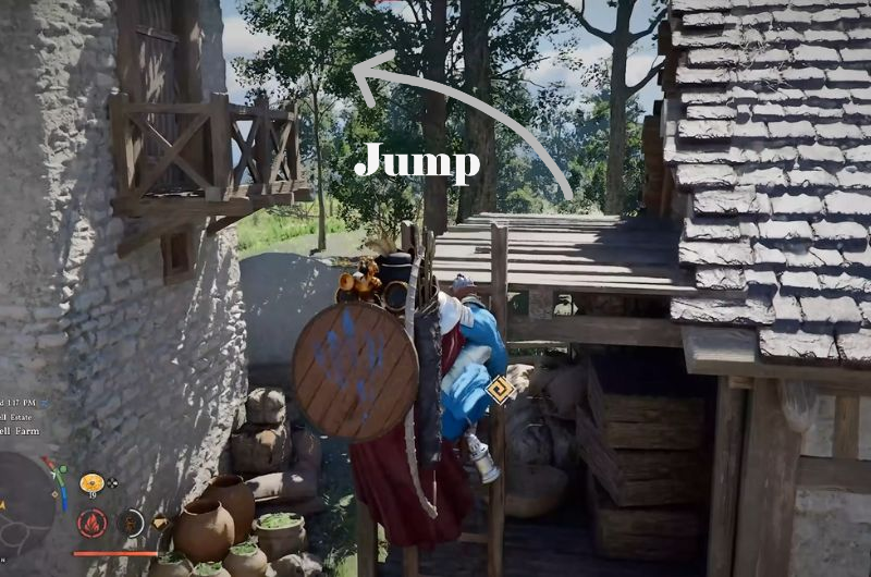 Make your way to the Stonewell Farm, near the Cascade Grotto. Here, you’ll find a small tower. Climb up the adjacent ladder and jump over to the door of the tower.