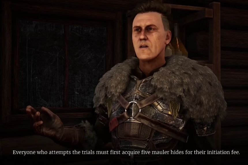 To start the Free Hunters quest, give 5 wolf hides as initiation fees. Hunt the wolves in the forest or loot the hides around the village. Also, hides can be bought from a merchant in the main village for 50 gold.